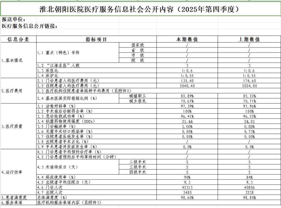 淮北朝阳医院医疗服务信息社会公开内容(2025年第四季度).xls